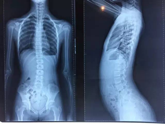 X光片可以看出有她有轻度的脊柱侧弯。“下交叉”姿态非常明显,腰曲过大,11岁的女生肚子向前突出,好像有了中年人的“小肚子”一样。卧位时,左侧骨盆高,右侧骨盆旋前,股骨内旋,尾骨上翘。整个人好像没有力气,“骨头发软”,只要坐下来就好像没有力气要东倒西歪。另外肠胃一直不太好,小小年纪就便秘严重。