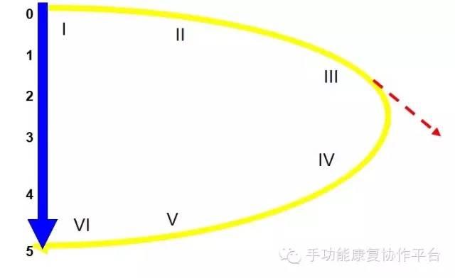 上图是上运动神经元损伤和下运动神经元损伤恢复的业界较为熟知区别图,竖线是下运动神经元损伤后恢复的过程,肌力在理想状态下会从无逐渐恢复到正常状态,曲线是上运动神经元损伤后可能出现的恢复过程,红色切线表示恢复过程中肌张力异常增高而可能出现的肢体和运动的“畸形恢复”,在Brunnstrom的恢复六阶段理论中处于III级明显共同运动模式和痉挛模式,不可控制。