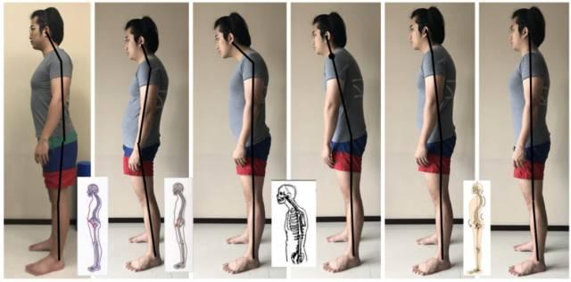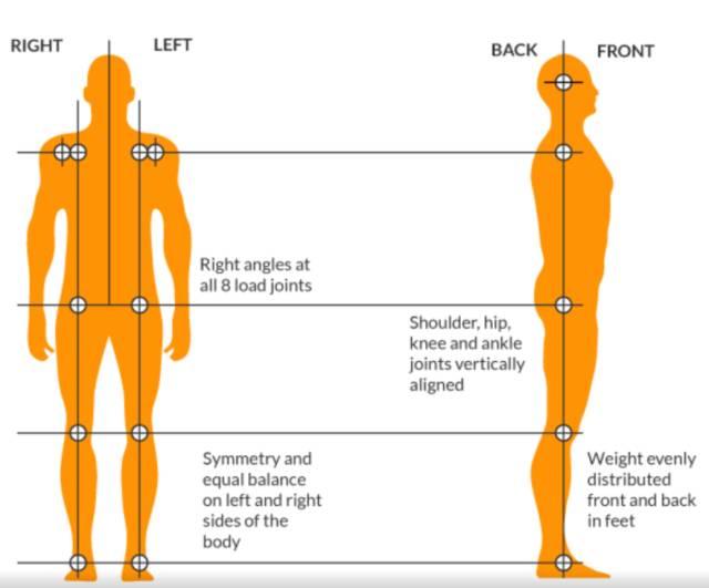 你们会发现好的身体姿态,其耳肩髋都是在同一条直线上面,头部保持中立位,肩膀自然放松,脊柱曲度正常,骨盆保持中立位等等,这样的体态相对来说给予关节的压力较小,并且消耗更少能量。