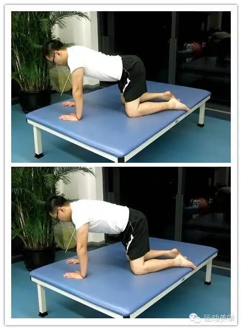 图片三:双手双腿支撑床面上,腰椎向下压陷,15个X3组